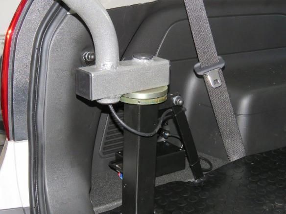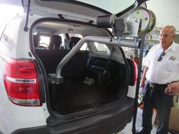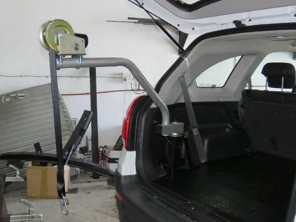 The winch lifts the wheelchair onto the roof and positions it on the bracket.